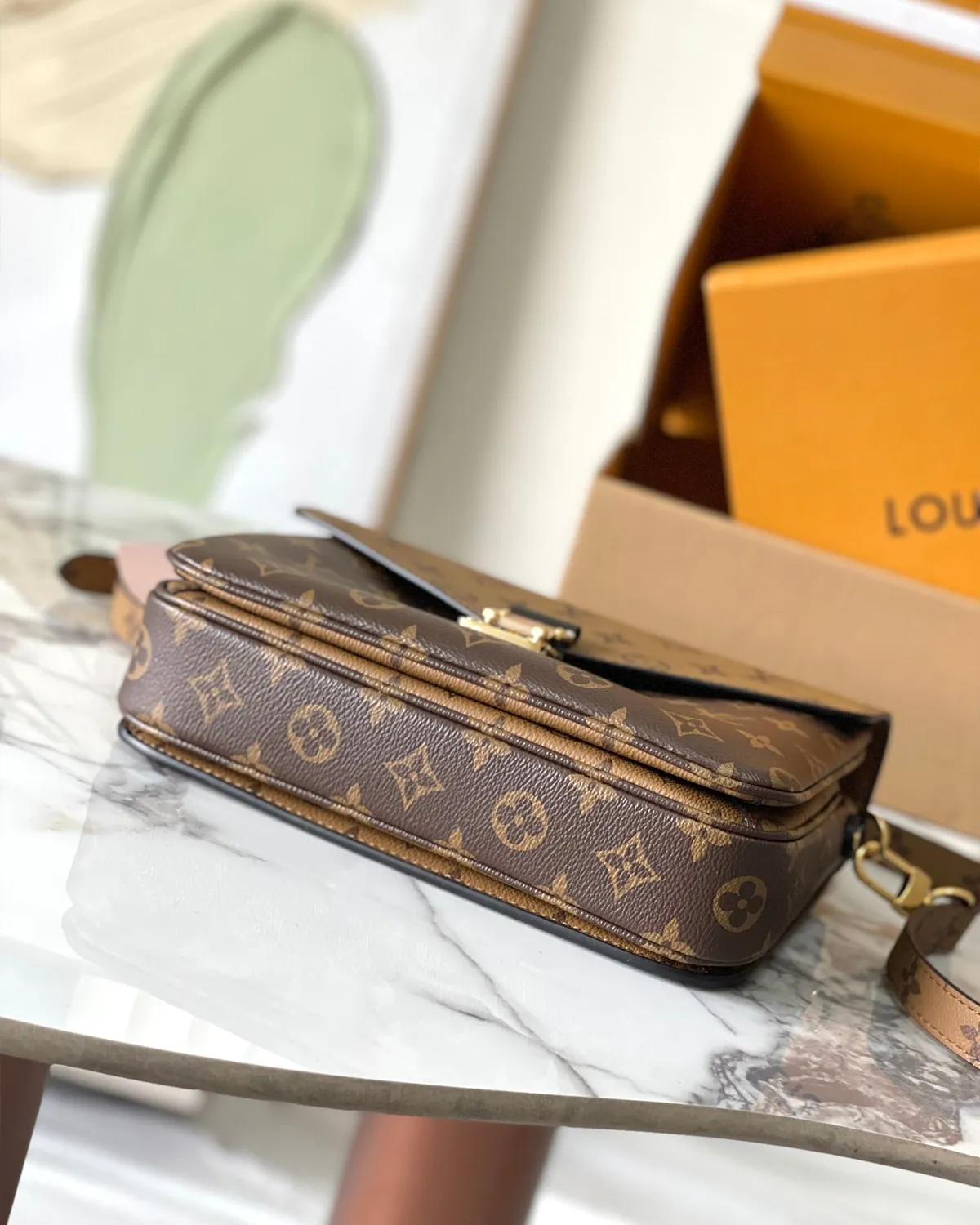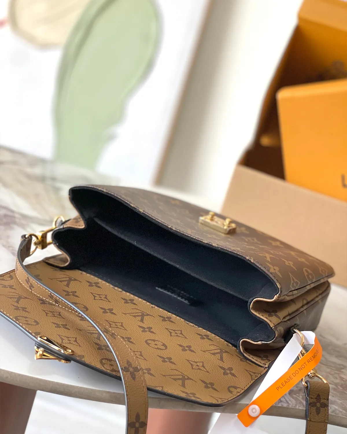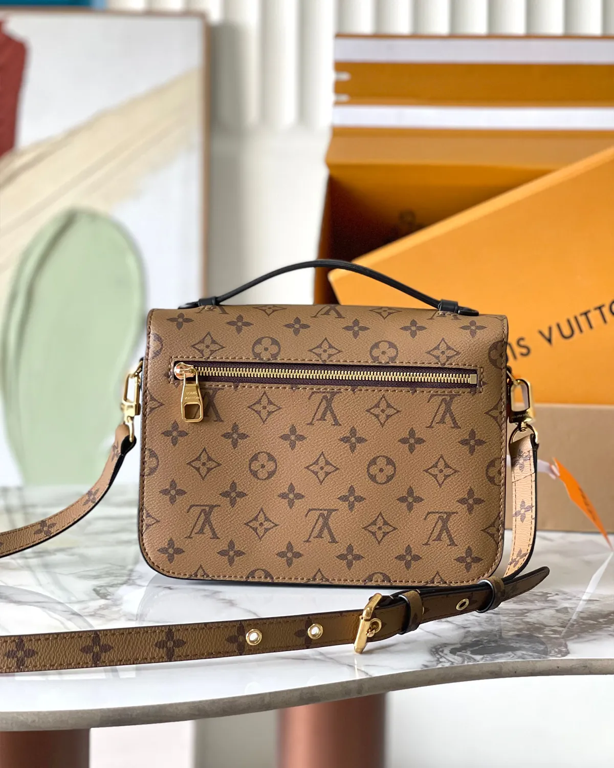 Just like its classic counterpart, this bag is a master of organization. The interior is divided into three compartments to keep your essentials sorted, while the back zipper pocket offers quick access to a phone. The removable strap features the Reverse Monogram print, allowing for a coordinated crossbody look.