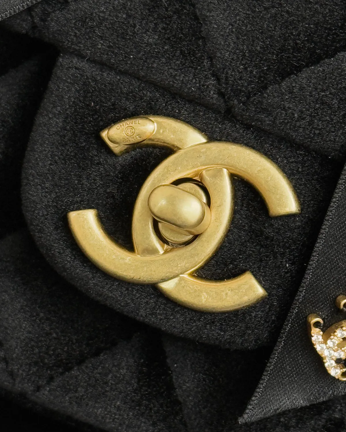The polished gold-tone turn-lock acts as the focal point, securing the velvet flap with a satisfying click. The chain strap, interwoven with leather, adds a modern edge to the vintage textile body. Whether carried by the structured top handle like a lady or slung over the shoulder like an It-girl, it is the ultimate finishing touch.