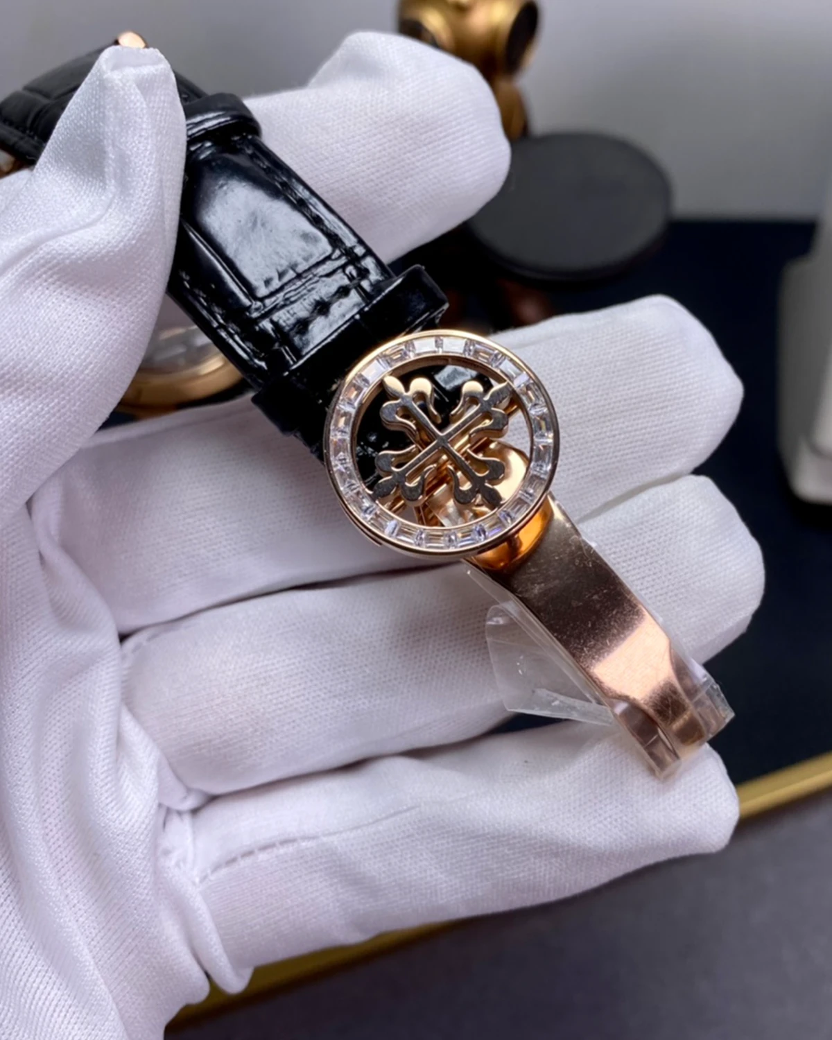 The black leather strap keeps the profile clean and dress-ready, balancing the detailed dial with a sharp, refined finish.