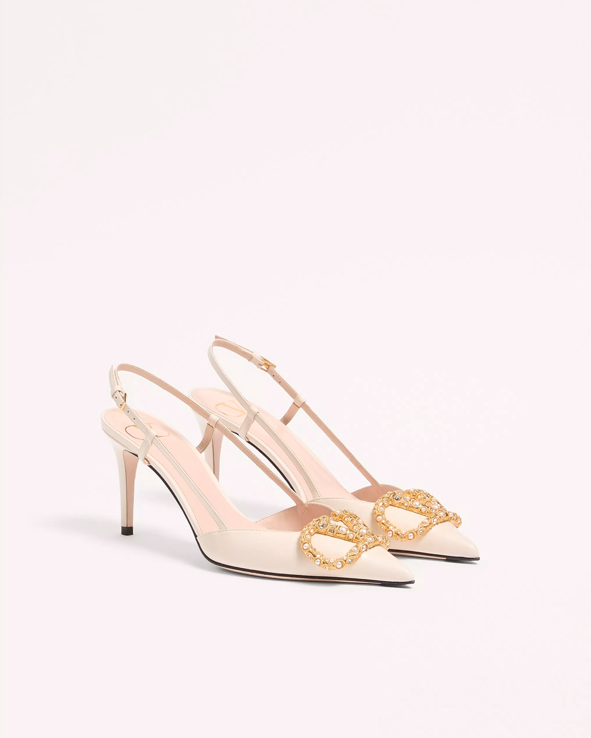 Vlogo Signature Slingback Calfskin Pump With Jewel Logo 80Mm Valentino