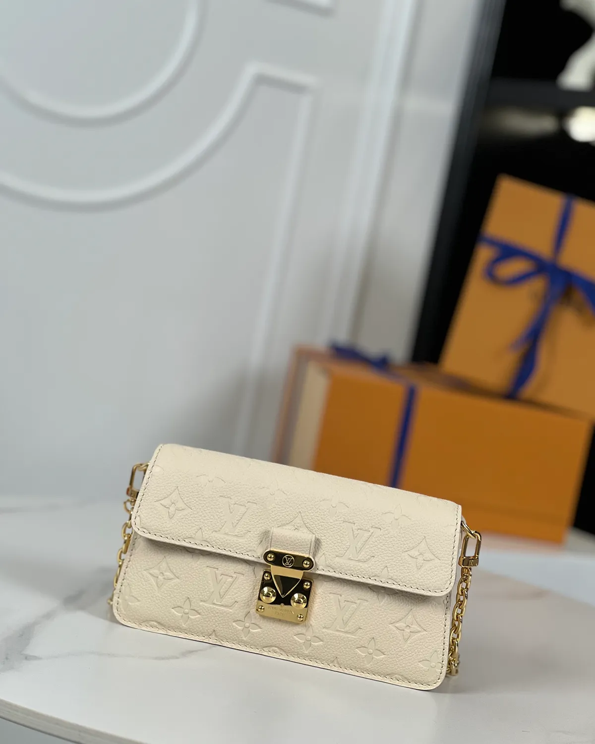 Signature Embossed Chain Wallet – Cream Leather | BagLadt