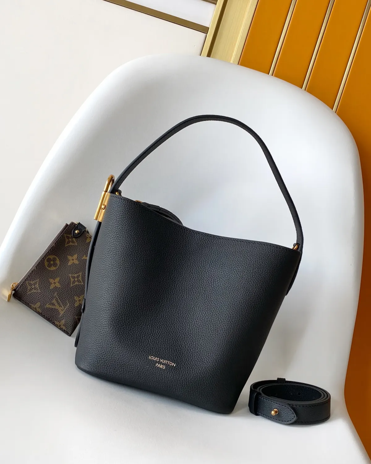 Signature Curved Shoulder Bag – Monogram & Gold Lock | BagLadt