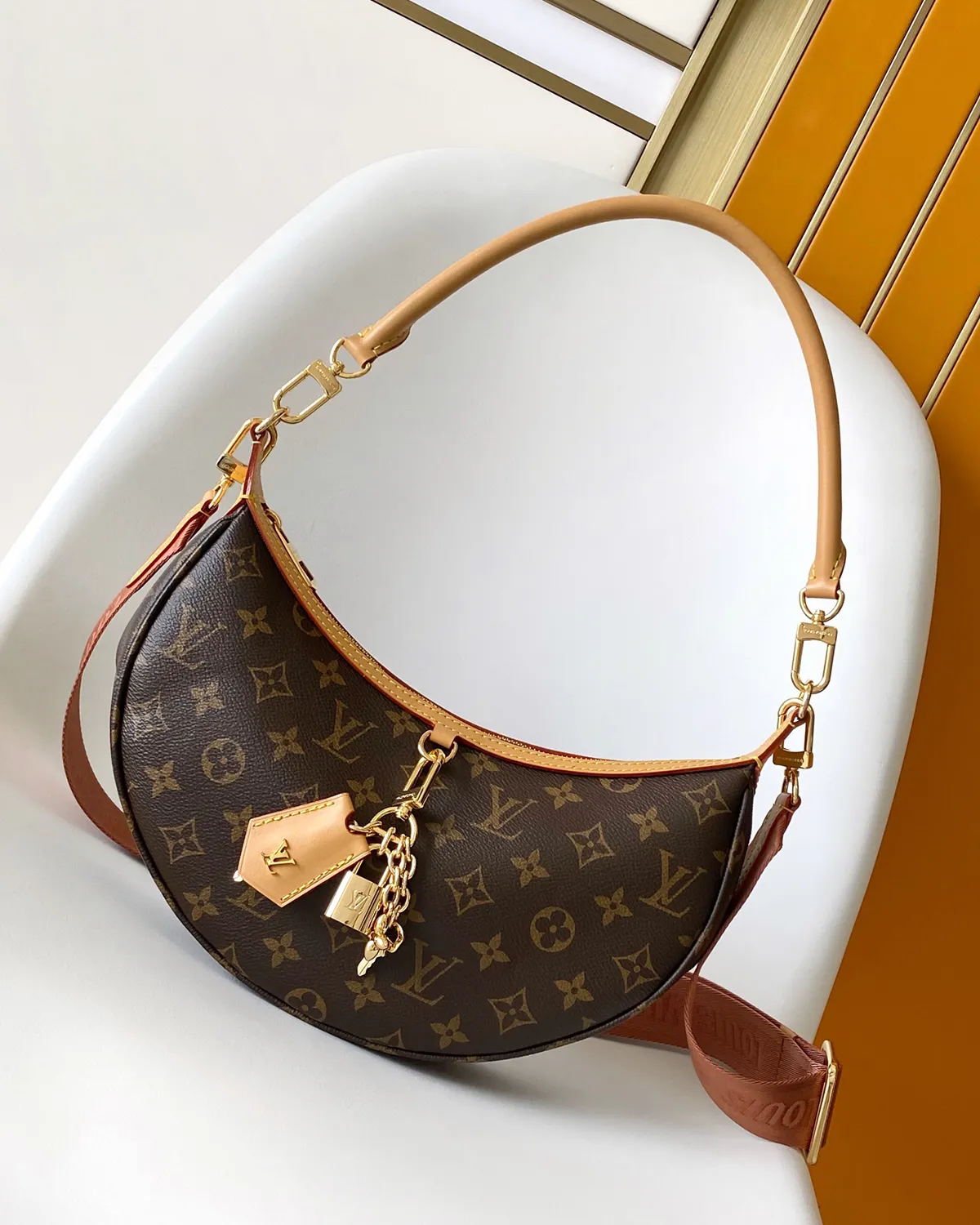 Signature Crescent Hobo BB – Monogram & Gold Chain | BagLadt