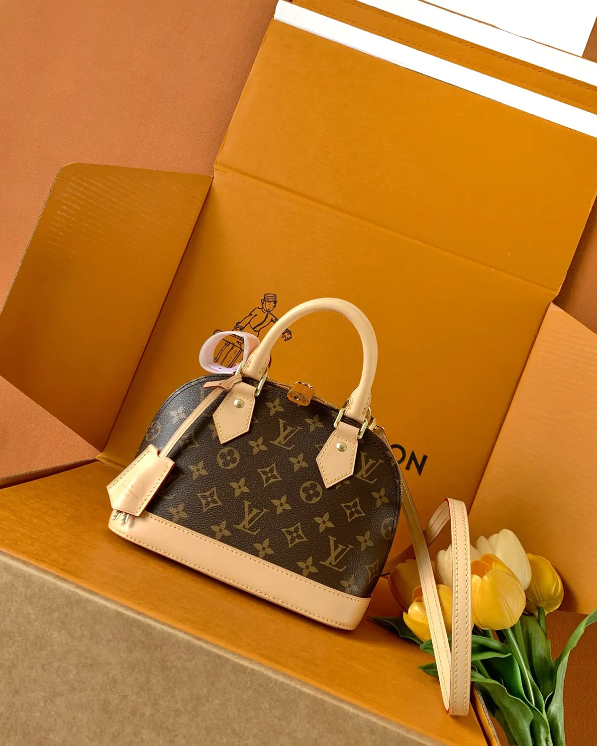 Signature Mini Tote – Monogram & Beige Strap | BagLadt