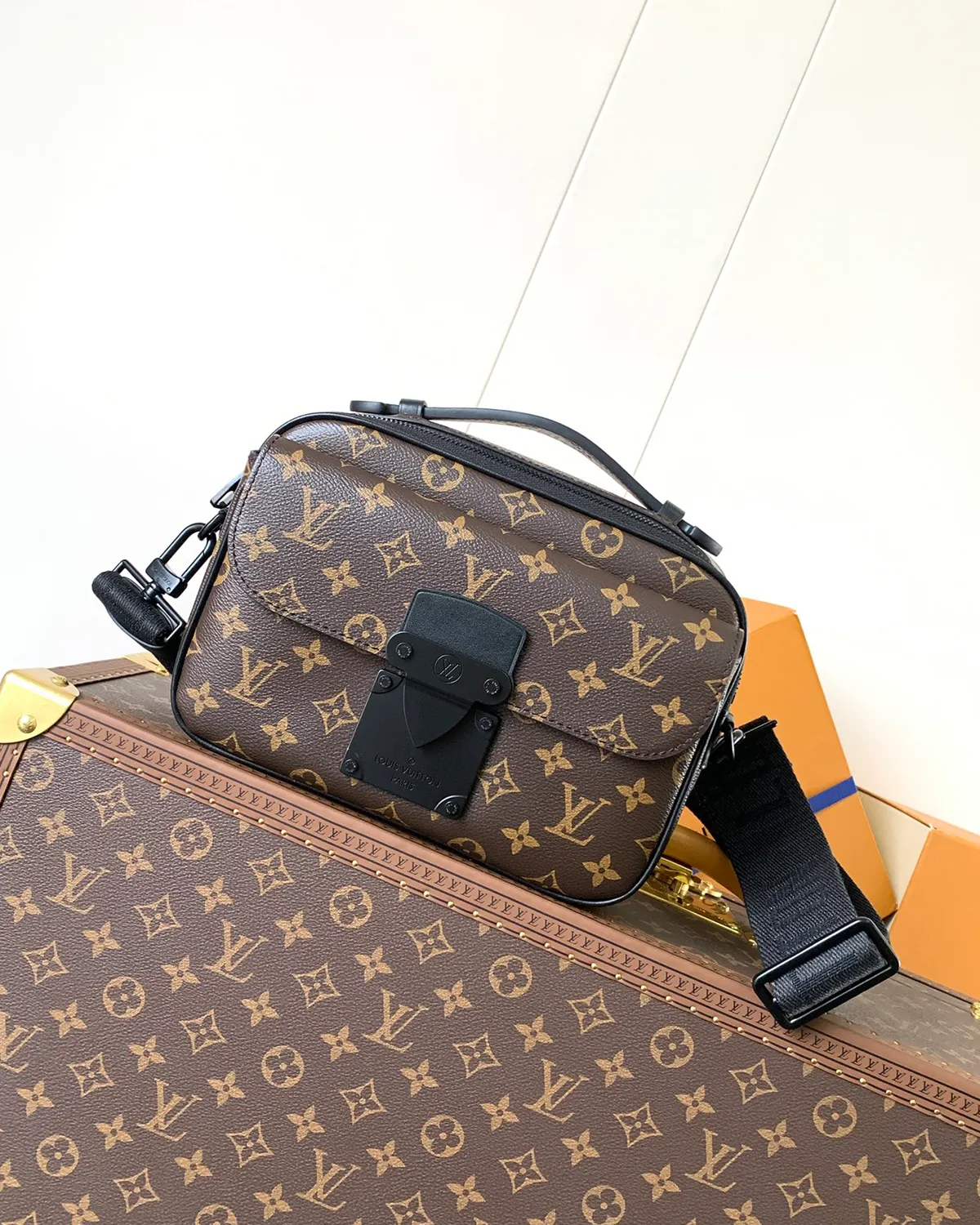 - Golden-finish metal details.